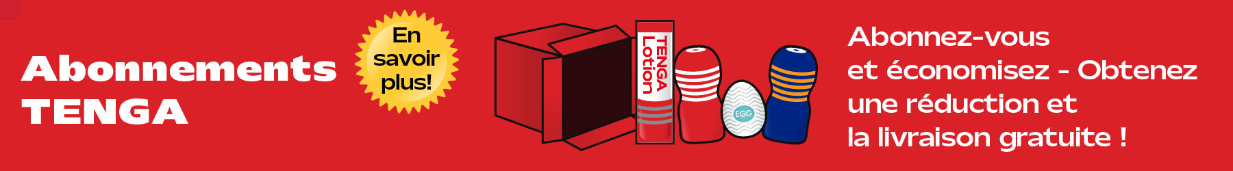 Bénéficiez de 5 % DE RÉDUCTION sur TENGA et de la livraison gratuite à domicile. Ne soyez jamais à court de vos produits préférés !